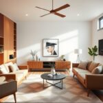 W salonie postaw na jasne sofy oraz proste Stolik. Meble powinny mieć naturalne tkaniny, a dodatki, jak pledy i poduszki, powinny być w stonowanych kolorach. Zainstaluj różnorodne źródła oświetlenia, używając minimalistycznych lamp podłogowych i wiszących, które dodadzą przytulności. Pamiętaj, by wprowadzić rośliny doniczkowe na drewnianych stojakach, co podkreśli naturalny charakter przestrzeni.